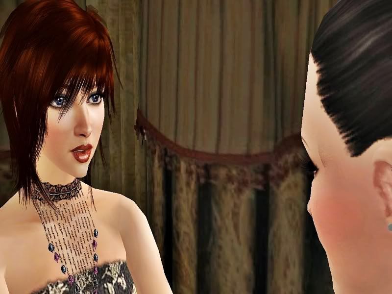 “There’s a whole lot of women out there, and they look pretty angry. And one of them-- this crazy-looking redhead-- she was standing on this chair, yelling something about the company, and this skinny chick with short curly hair… well, she basically kicked the chair out from under the redhead. And…” She looked out again. “It looks like two chairs have been destroyed so far, from them going at it. And there’s this dude… I swear to God, I think I’ve seen him somewhere. He’s trying to pry them apart.” She looked over at Ophelia. “Are all your shows this exciting?”