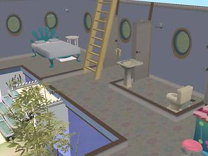 A tiny tropical paradise home built over water. Minimally furnished, with everything a new Sim needs to get started. Includes driveway. (Requires Nightlife and University.)