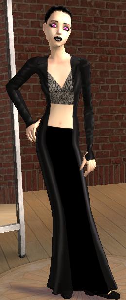 It's a trenchcoat with a spider webbed top and a black skirt. It's also formal methinks. Enjoy.