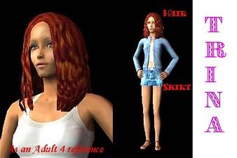 Trina, a fiery red head like her mother, wants to makeout with as many sims as possible and cannot wait untill the day she can have her very first woohoo. She is so much like her mother!