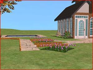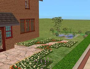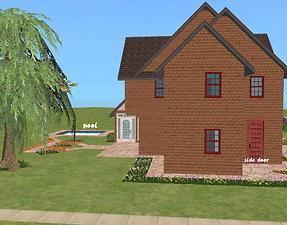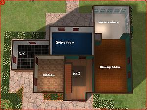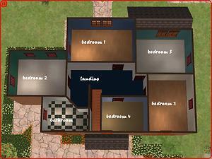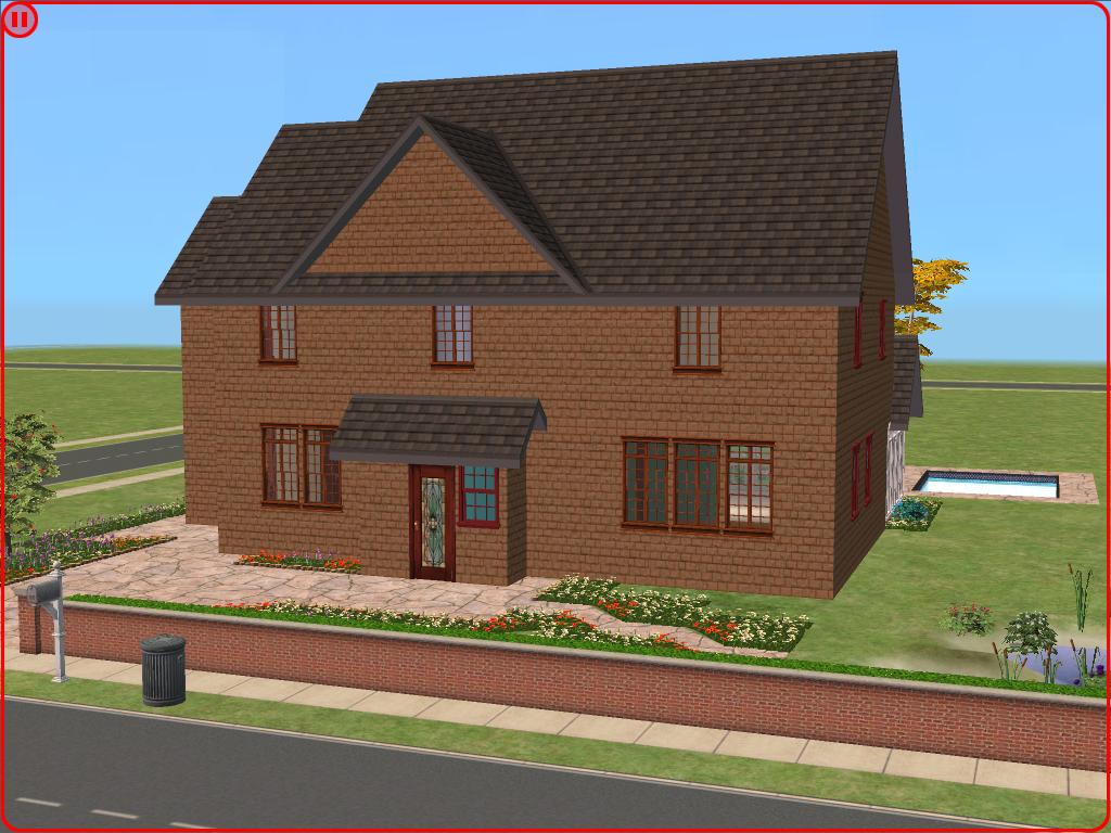 This house was based on the house of one of my friends. It has five bedrooms, two bathrooms, a kitchen, living room, dining room and conservatory. The outside features a spacious driveway, many plants, small pond, back patio and small pool.
