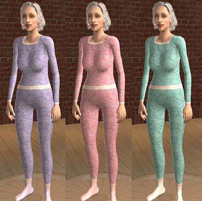 Here is a collection of 6 damask patterned PJs with long pants and socks with lace borders for sim Granny!