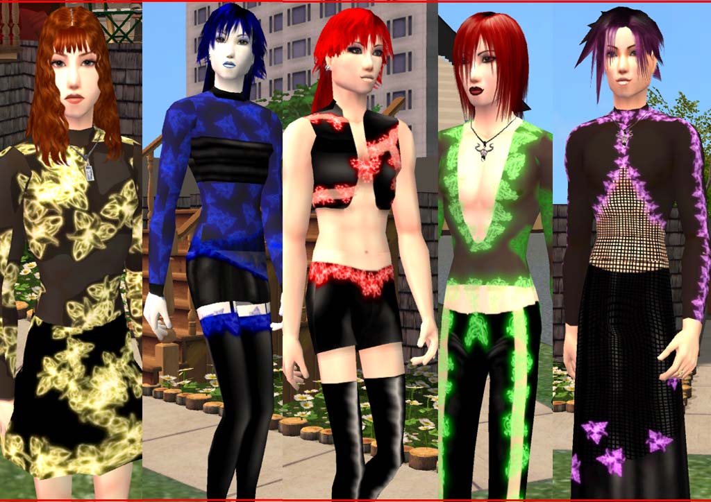 Another set of outfits for my JRock sims, in five different colors and styles, a was going to make only 3 colors and one style originally, but then decided that one style is to boring