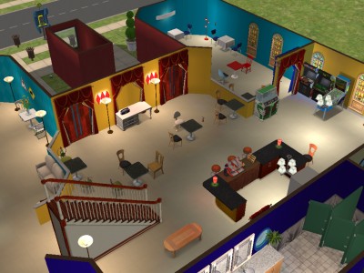 It's me again, this time with a community lot! YAY! So I present to you the Talon from Smallville. I tryed to make it look as real as posible, but it was hard cause there aren't so many pics of the Talon on the net. I even put a lot of curtains everywhere to get the talonish style. But anyway it doesn't have the cinema. But it does have the apartmant upstairs. It's big has a storage. That's all. No custom content!