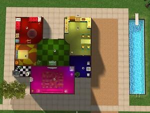 Here is a groovy home for your sims. It has two bedrooms, it's very colourful and has a raised ceiling in the lounge room. Complete with pool and driveway ....
