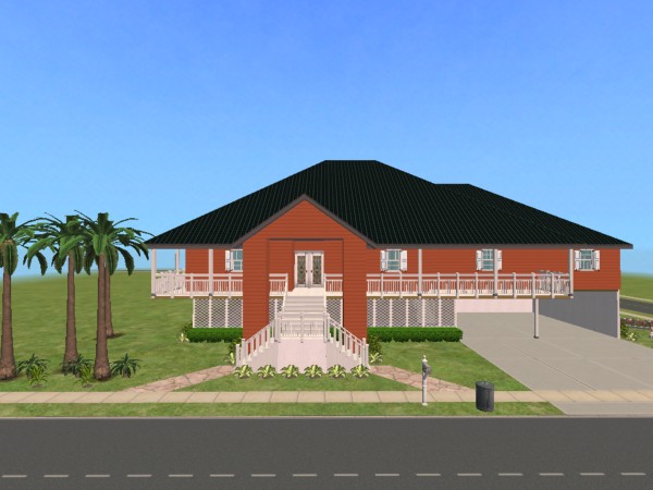 I tried to use as little CC as possible, so the colors are not quite what I'd like, but are easily changed. Landscaping has been kept to a minimum, as I'm not particularly great at it, and it's something I feel should accommodate individual tastes. There is plenty of backyard space for a pool or any other amenities you may like. The lower floor is accessible and usable, and since the house is built on walls rather than foundation, it should be easy to modify or wall off should you wish to do so.