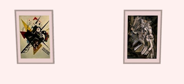 They were taken from works by Kandinsky and Marcel Duchamp. I find them very suited for your modern Sims houses