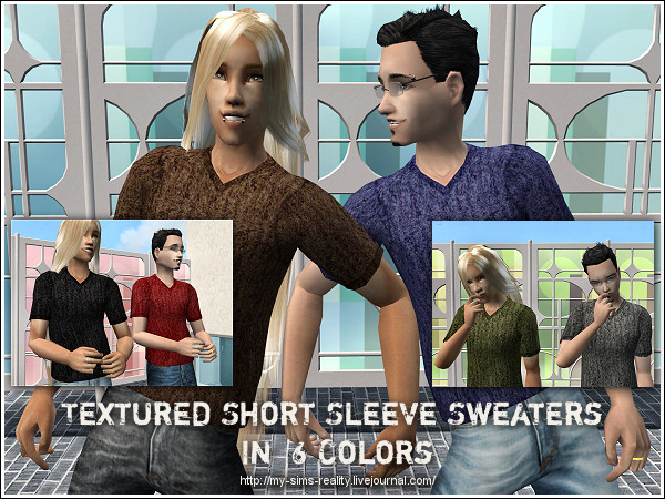 For adult males, here are some textured (ribbed) sweaters with short sleeves.