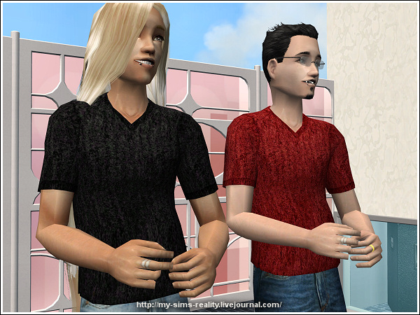 Notes: I'm using Navetsea's skins from his old skinset: Kit (blonde) is wearing the medium shade. For Emil (dark hair), I modified the palest shade for my personal use only (obviously not available for download). Kit's hair was originally made by Sshodan, here at MTS2. I modified it for my personal use only and is also not available for download.