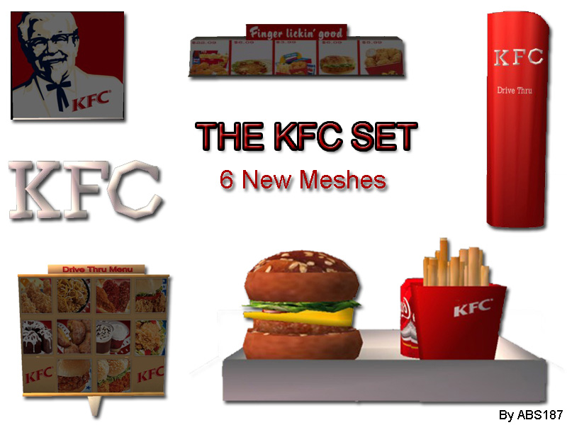 Here is a early christmas present for you people, its a 6 New mesh set of KFC Items.