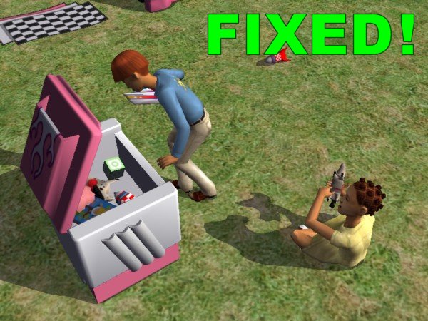 - It's not possible to put away the toys (the sim picks up a toy, and then drops it, because he can't find a suitable toybox where to store it);