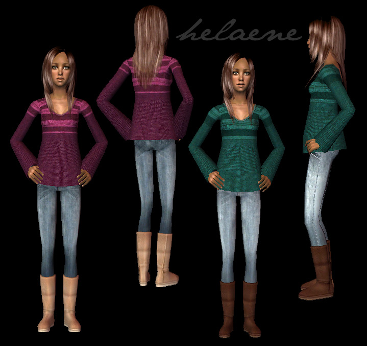 this is just a new mesh for your teen female sims and 6 recolors/styles of clothing for the mesh.