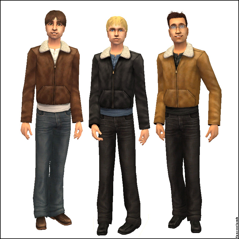 Each rar file contains 6 outfits - the named jacket & pants with all 6 shirt colours. All files are clearly named so you can just install the ones you want. The teen and adult versions are identical. The adult clothes can also be worn by YA & Elders.
