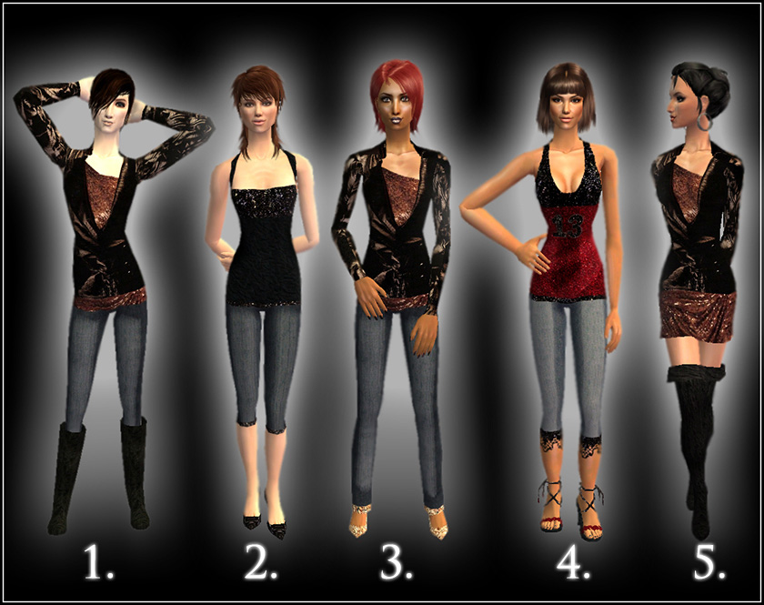 Outfit nr. 5 - made on a MESH from Helga Sims . MESH IS NOT INCLUDED. If you want the outfit to work, you must obtain the MESH HERE . Click "Meshes" and it's the first one in the top-left corner.