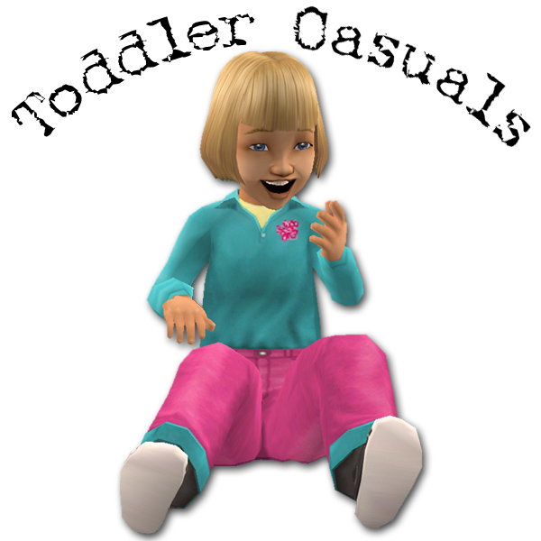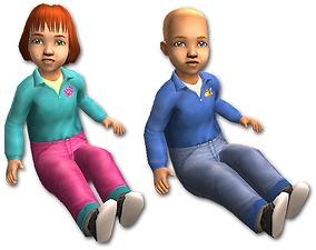 I thought my toddlers needed some casual two-piece outfits. They're always dressed in one-piece striped suits or dresses (well, the girls are wearing dresses, anyway). I used one of the base game meshes to put together this outfit, which I hope looks like a onesie under a pair of pants.