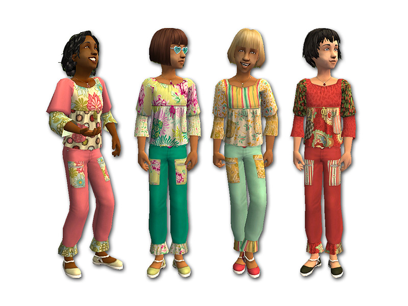 Thanks to melodie9 for the hairstyle age conversions. The blue heart sunglasses are a free download from the official Sims 2 site.