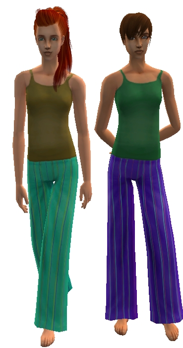 After my teen ones i´ve also made some simple striped pyjamas for the ladies. They are just a little bit different, i used another texture for the pants. The outfit contains of a simple top and other coloured striped pants. These are so simple, but i really like them, and i hope you also do.