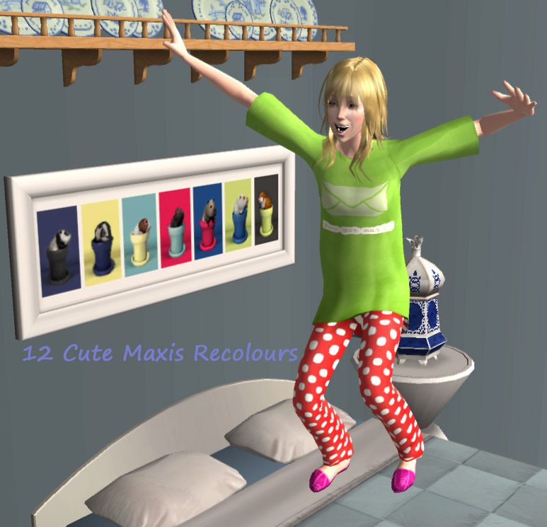 Pajamarama is a collection of 12 mix-and-match recolours of the baggy outfit for females that came with Nightlife (So nightlife is required for these to come up!!!). There are T-shirts that are plain, T-shirts that have designs and even quirky quotes! Baggy need not be daggy, these are some pretty funky pajamas! Please excuse the text on some shirts as they may be hard to read (They looked very legible in bodyshop, I swear!)