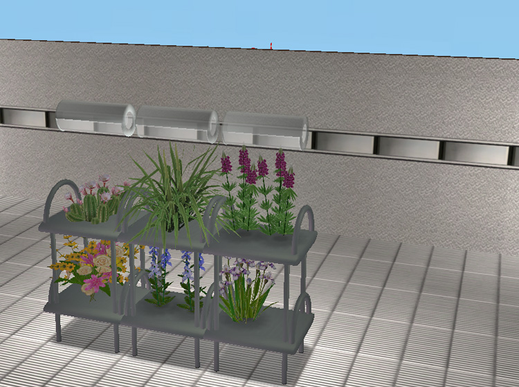 The Airponics shelf was cloned from one of the OFB display shelves. The conference table was cloned from the UNI cafeteria table.The deco console was cloned from a NL vase. Everything else is base game.