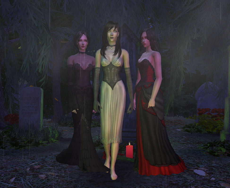 its 5 vampire dresses for your vampy women to enjoy. one mesh is required for VampireGown 4, its by iamliz13 and you can grab it here .all other meshes are included