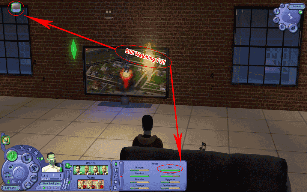 I altered the line that calls that global and prevents it from exiting, if fun is maxed (your sim will still stop watching and turn the tv off for more pressing matters, such as needing to pee on the floor, etc) or if another sim takes control over the TV.