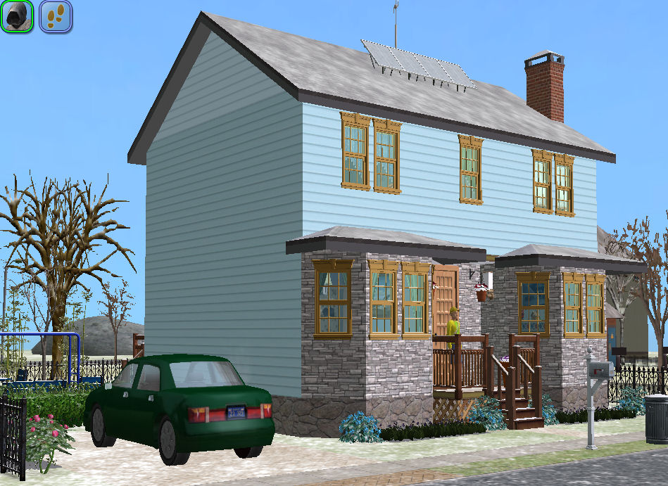 Downstairs is a livingroom, den and kitchen/dining area plus a full bath. Upstairs are two large bedrooms, one small bedroom, a full bath and a spacious landing that doubles as a recreation room. Downstairs is a dank and dingy little basement used primarily to store odd objects that are not wanted at the moment. There are more odd objects than is typical in such a house because when Death hung around I decided to take pictures...and while taking pictures I discovered that when a sim dies--if you have them selected at the time of their passing--you can actually spend all their aspiration points. They don't have to take it with them!
