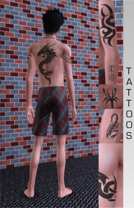 Jiro comes with 6 Recolorable Tattoos I made (with CAS thumbnail)