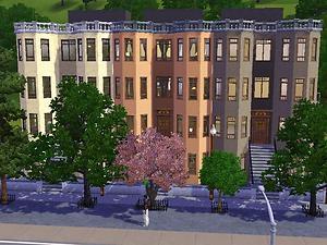 This lot was inspired by traditional brownstone apartments, although they are not meant to be exact replicas.