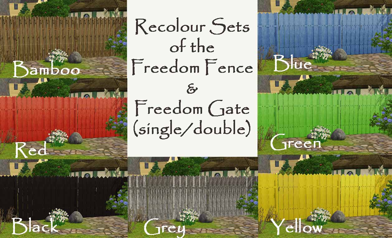 #freedom fence, #freedom gate, #recolours, #recolor, #build mode, #garden, #black, #grey, #blue, #green, #yellow, #bamboo, #design tool, #wood, #gates