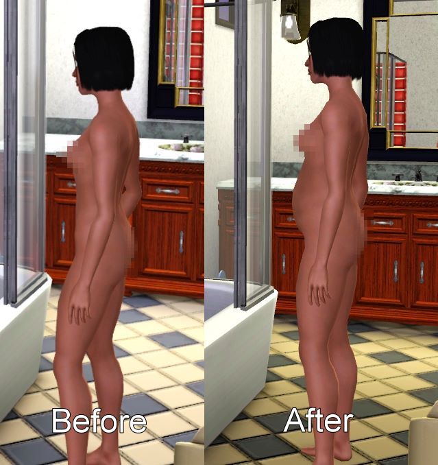 You've probably seen the pregnant Sim women lose their belly when they take a shower or bath. Some of you have also noticed that the jeans enabled in the game for maternity wear don't actually change shape when the Sim is pregnant, leading to a pregnant upper body while the lower stomach stays flat. This mod fixes both of those glitches.