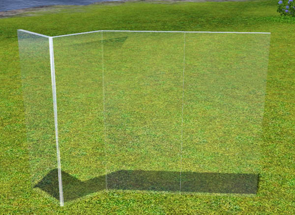 I know there are already a few glass wall out there, but I wanted a thicker one, that actually showed the thickness and a bit of the joints between each pane. And I wanted a diagonal too, so since I'm painfully noob at coding of any kind, I just made a second window of the right width for a diagonal. That's my current fix for the problem, and I'm sticking to it (until I know better ^^). I won't pretend it's the perfect glass wall, but I like it, and I hope you will too.