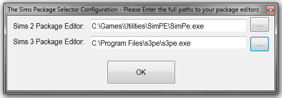You will see this dialog: (You can configure your Sims 2 and Sims 3 Package editors by entering the fullpath to the executables)
