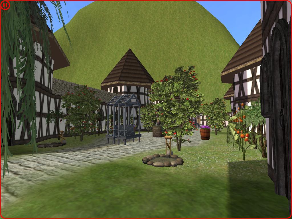 This secluded little community lot holds a bakery on the rights side and a dining area on the left. Both sides are accesable from the arched bridges over the pond. more...