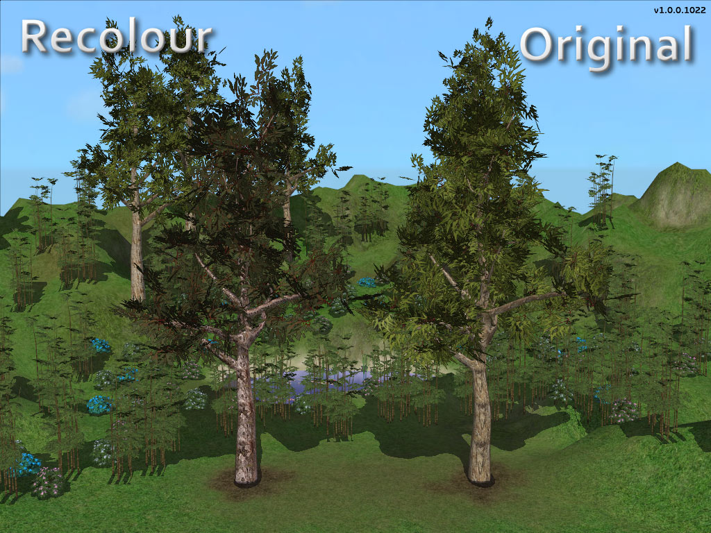 This is a Eucalyptus tree I modeled from scratch. I'd like to get some feedback as this is the first mesh I've made for use in The Sims, my other meshes have been for rendering. I have uploaded three files, the first file is for people who don't own Seasons, the second file is for people that do and the last file is a recolour that works with both versions. It doesn't drop leaves, the only changes you will notice are in winter when it snows (a snow texture will appear on the leaves).