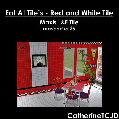 In cleaning up (and out!) my walls catalog, I found a very useful wall (actually 2 walls) which Maxis decided to keep hidden. These simple red and/or white tiled walls go with the "Eat At Tile's" wall and floor set from the Apartment Life EP. They are the same tile, but without the black and white checkered borders. I borrowed Maxis' LIFO file and made these walls with HomeCrafter, so I think anyone can use them - whether or not you have AL installed.