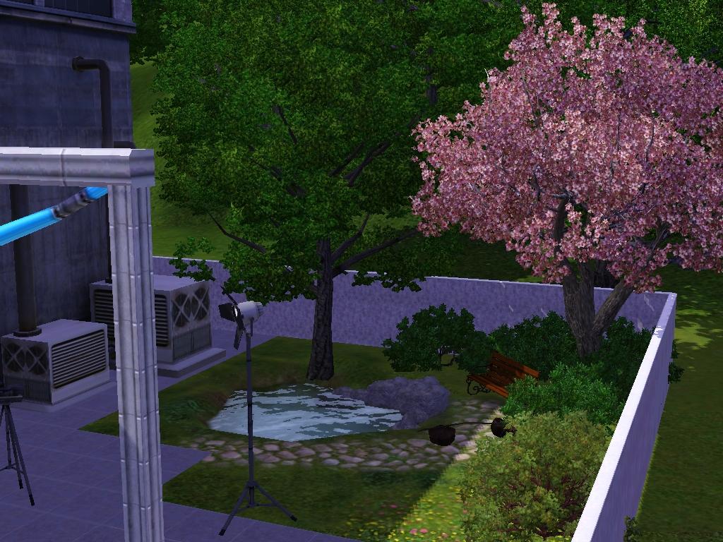 There are four total: a garden with a pond, a paneled house, a romantic-looking balcony and a castle wall. Aside from the rabbithole and the sets there’s nothing else on the lot. No CC, no stuff packs used to decorate.