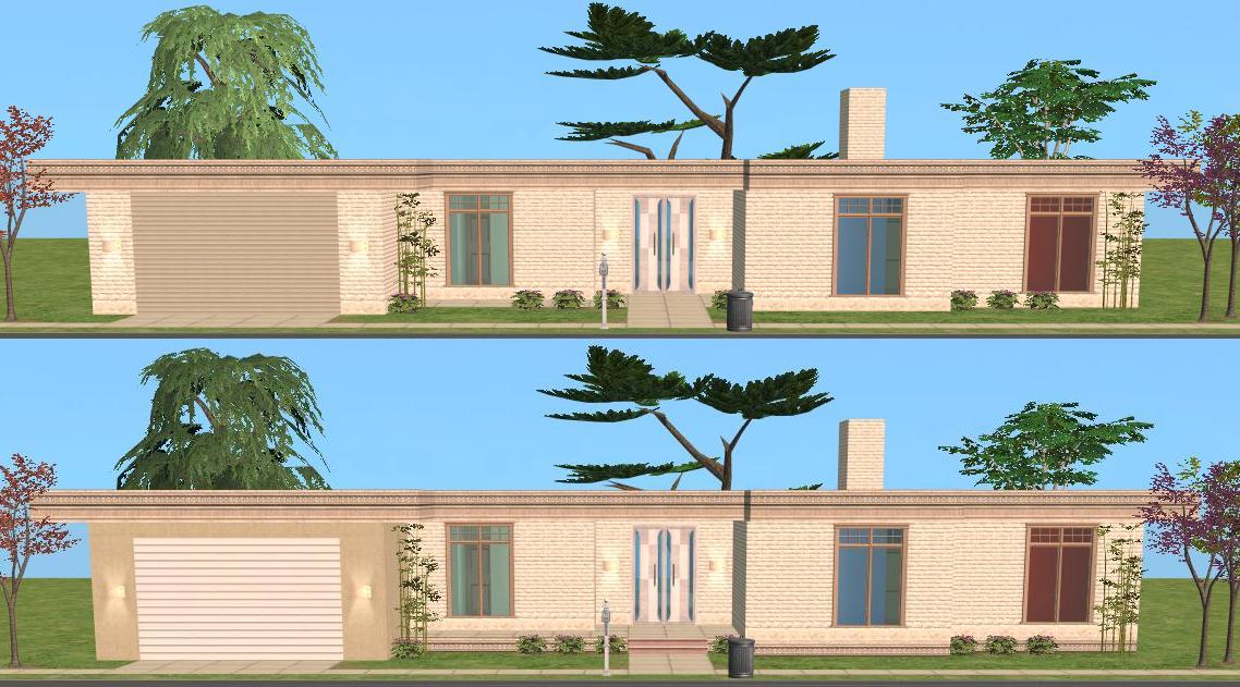 Modern inexpensive base-game no-CC 3-bedroom starter-furnished one-story house on ground level or with basement. more...