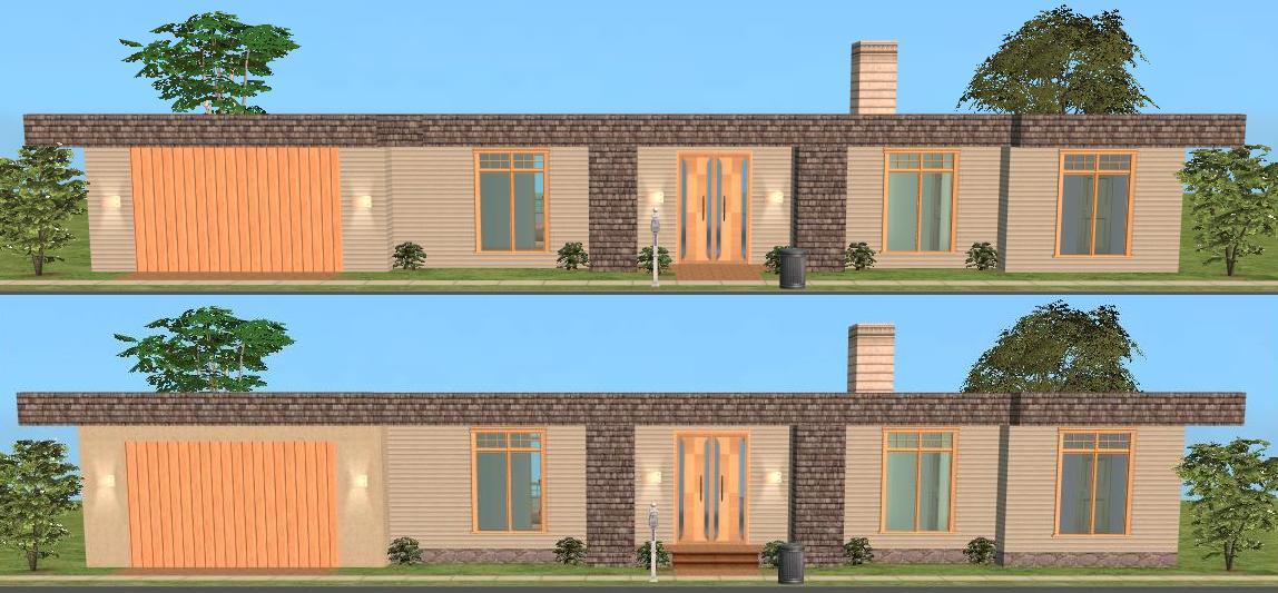 Modern inexpensive base-game no-CC 3-bedroom starter-furnished one-story house on ground level or with basement. more...