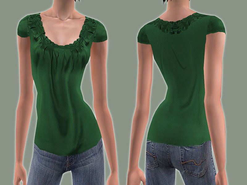here is a pleated top for female adults with jeans for everyday (whole outfit) with recolours. I´ve used a mesh number 157 by http://www.lianasims2.net/. The mesh is in each zip file included.
