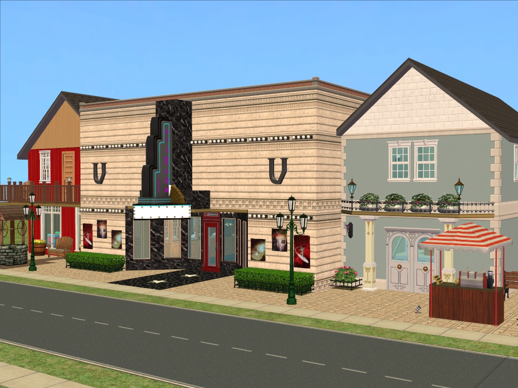 The main feature is the Universal Cinema. An older cinema, your sim will be swept into bygone days as they enter the lobby.