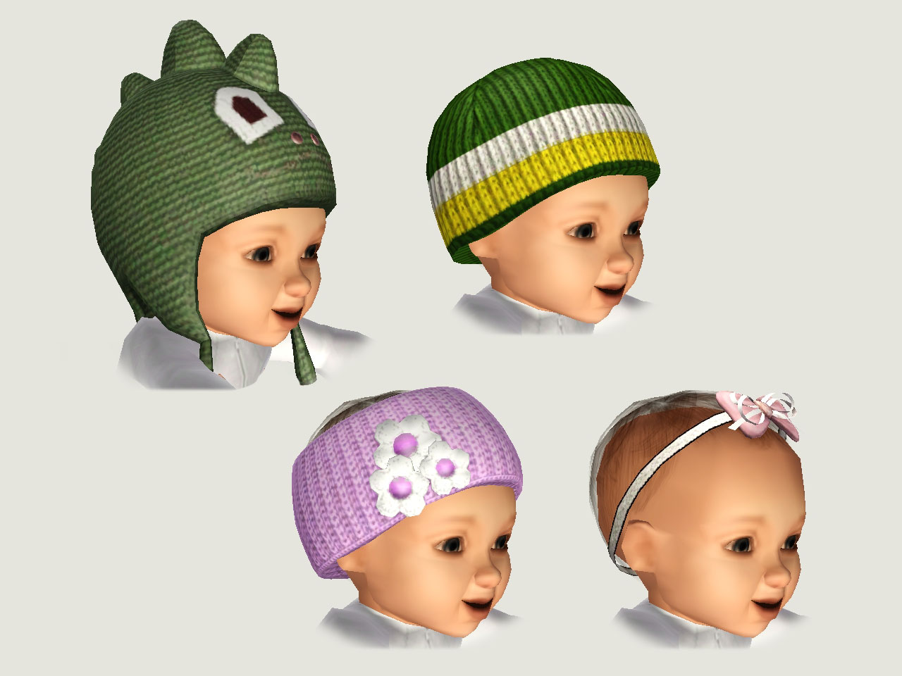 - All hats found under Clothing/Everyday/Accessoires, categorized as earrings. You need NRaas MasterController to get your baby into CAS and put the hats on. They are not valid for random, and therefore won't appear on newborns.
