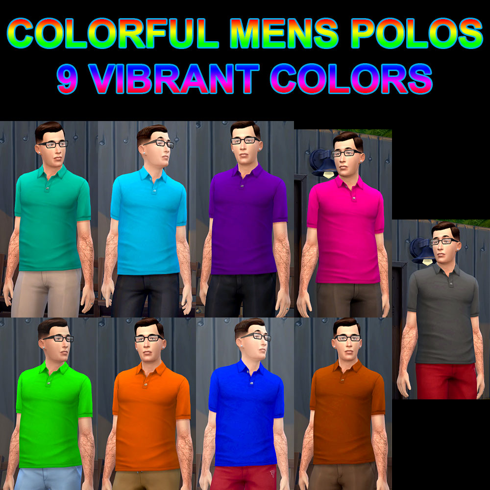 9 New Vibrant Polo Recolors for your male sims to wear. Now you can have any color to suit your mood!