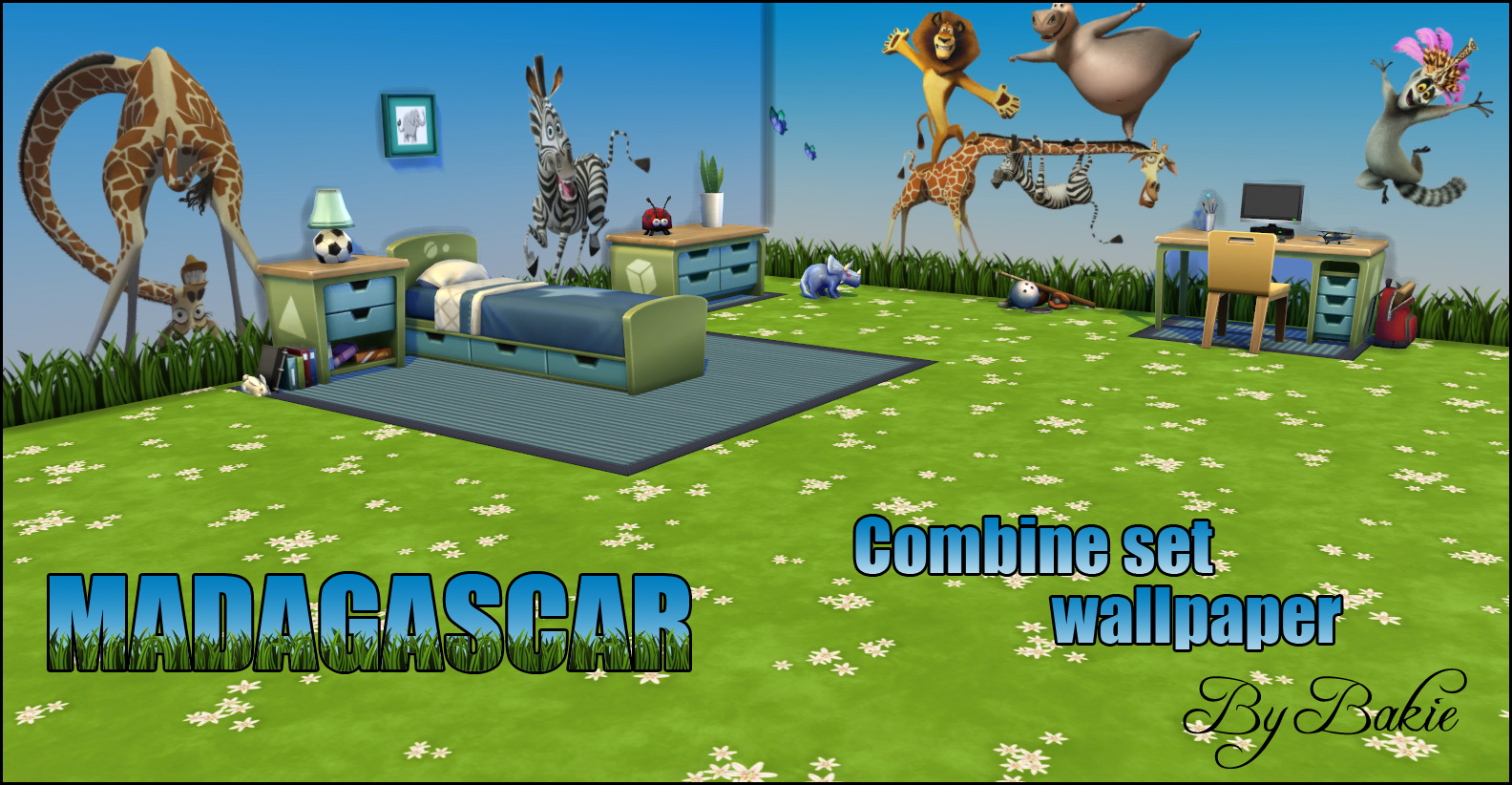 #The Sims 4, #Sims 4, #Multiple tile Wallpaper, #Multiple tile Wallpapers, #Mural, #Wallpaper, #Wallpapers, #1-tile, #2-tile, #4-tile, #Wallcovering, #Combine set, #Combine, #Madagascar, #Kids room, #Babies room, #Kids, #Baby, #Standalone, #BakieGaming, #Bakie