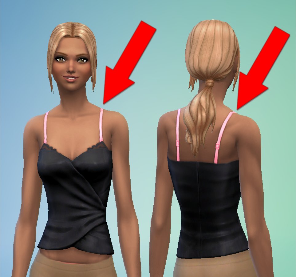 The bras and their straps from the accessories category will display underneath tops and outfits of clothing.