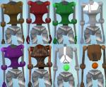 A big thank you to Flarz for his discovery that the specular from the GTW mannequins produces a highly shiny all-over effect that was perfect for these bots!