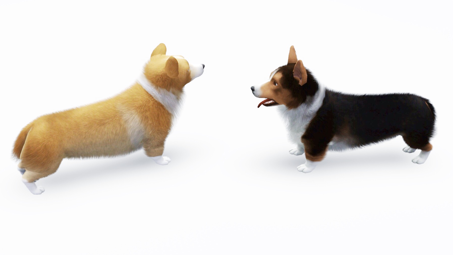 Since their legs is made by sliders in the game, it will look pretty weird and funny when they sit down, eating from a bowl, sniffing on another dog and more, but it really isn't such a big deal. It looks just as it should when they're laying down and when they're walking and more so the dog itself looks really, really cute in the game, just like it should.