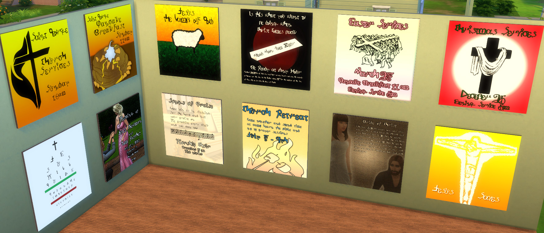 The small posters are based on the base game's mesh for a poster for reading. (It has 12 swatches)