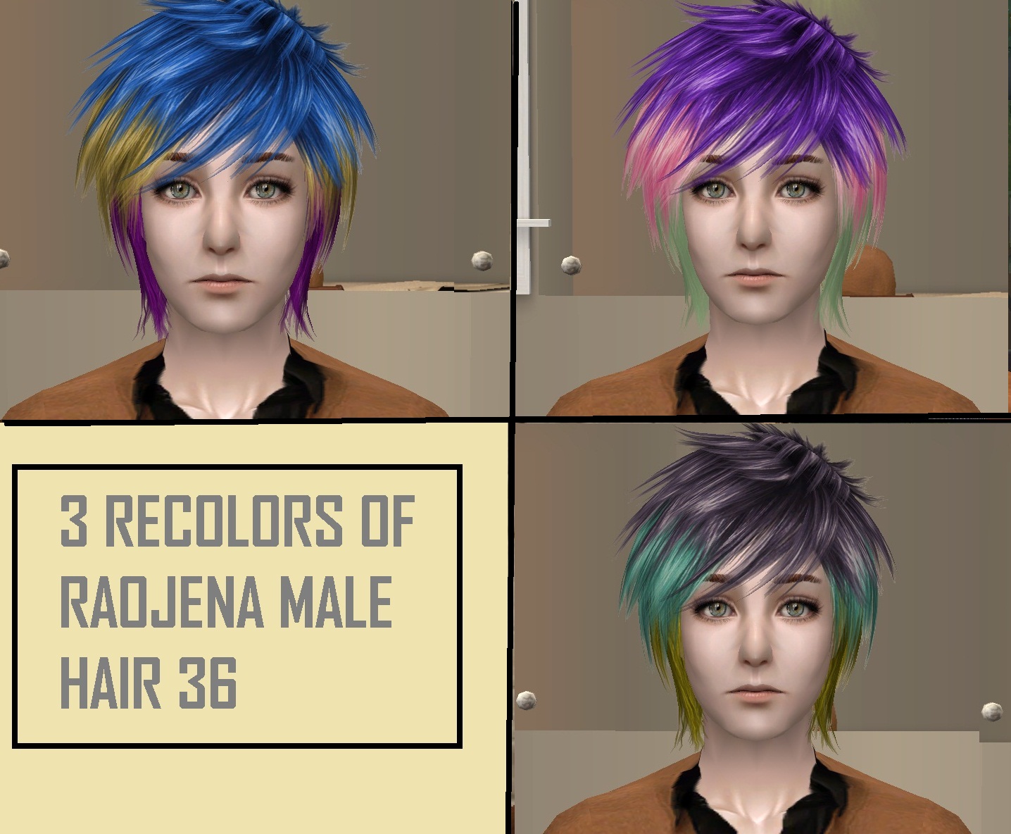Here are three recolors of Raojena Male Hair 36. Sometimes I find these type of punk/crazy recolors very useful for my sims.