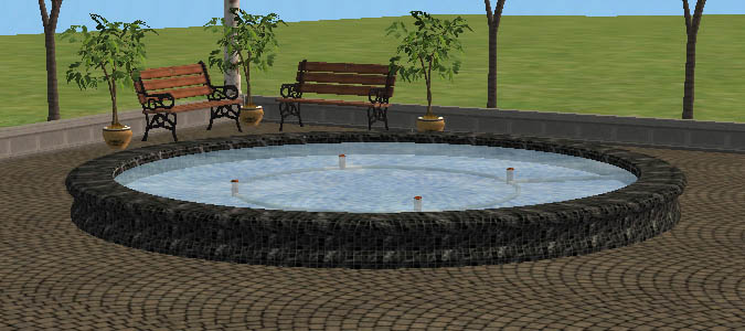 Here are some re-colours of the Spaceship Spacious Fountain in a tiled look as alot of the fountains I see in real life are tiled. Aside from my usual purple, blue, green, yellow, orange, red, black, white and pink, you will find another 10 multi- coloured ones. I have tried these in my own game and they work ok for me.