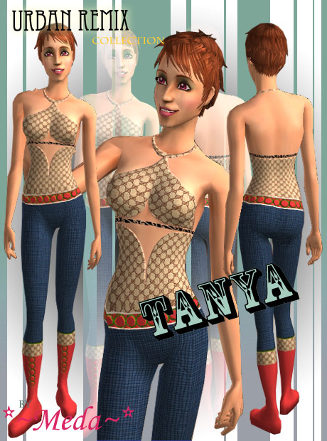"Tanya" is a fun piece that features the Gucci Monogram halter top, extremely form fitting jeans and orange Gucci boots. I hope you will like this piece, and please let me know how it works!